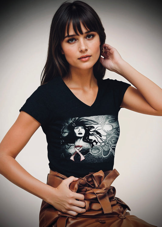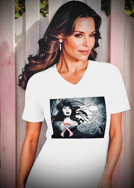 Pink Ribbon (Noir) - Unisex Short Sleeve V-Neck Tee