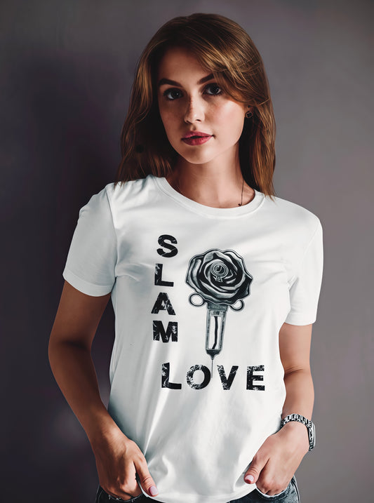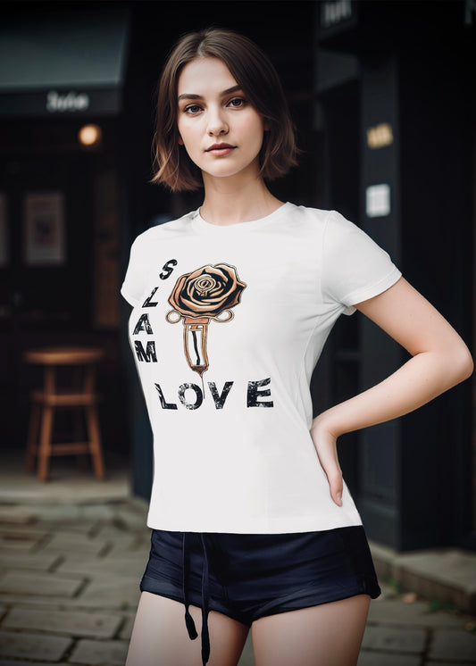 Slam Love - Gold Rose - Women's Relaxed Crew Neck - White Tee