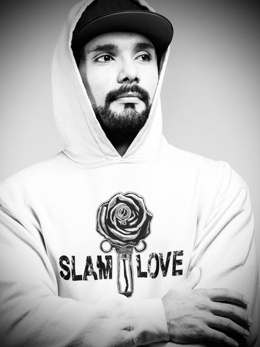 Slam Love (Noir) Front - Overcast White Hoodie