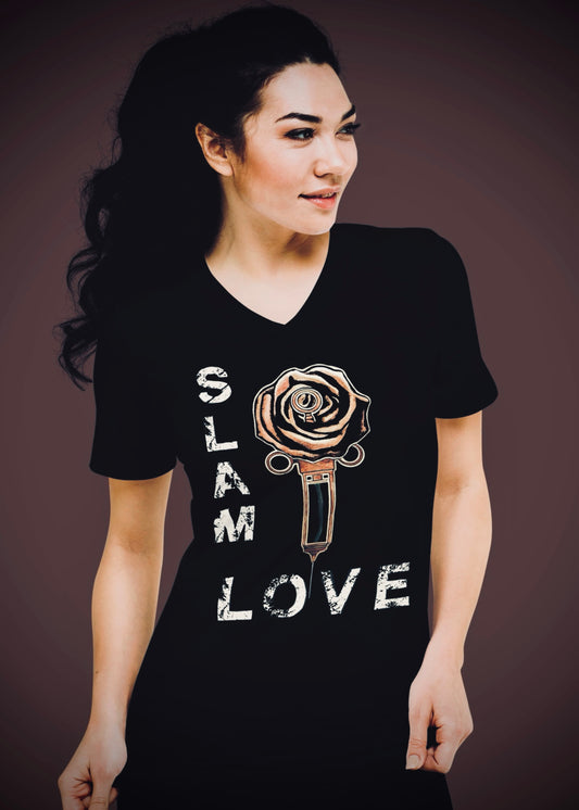 Slam Love (Noir) front Rose - Unisex Short Sleeve V-Neck Tee