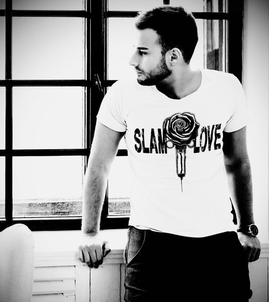Slam Love (Noir) front Rose - Unisex Short Sleeve V-Neck Tee
