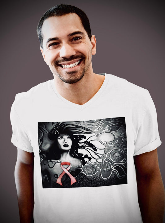Pink Ribbon (Noir) - Unisex Short Sleeve V-Neck Tee