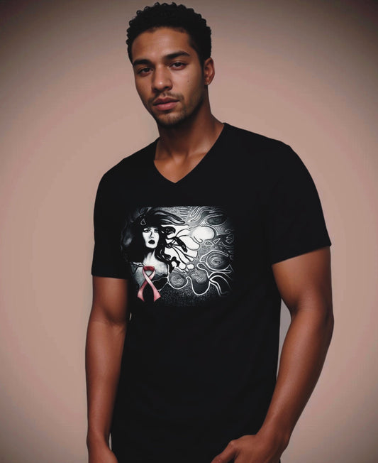 Pink Ribbon (Noir) - Unisex Short Sleeve V-Neck Black Tee