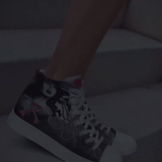 Pink Ribbon (Noir) Women’s High Top Canvas Shoes