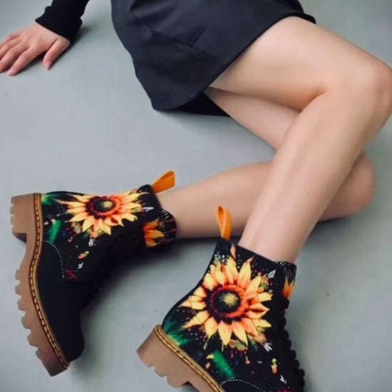 Sunflowers are a symbol of hope, positivity, and the journey towards recovery in the context of mental health. It is also related to suicide awareness, and is used as a discreet symbol for people with hidden disabilities, indicating a need for assistance. Sunflowers represent resilience, endurance, adoration, loyalty, and faith. The sunflower's purpose is to provide sustenance and joy...shining a light on hope. Great causes need great designs! Reinvent your wardrobe in these stylish, digitally printed Art Boots. These artsy canvas boots will be a great addition to your wardrobe while championing wonderful causes.