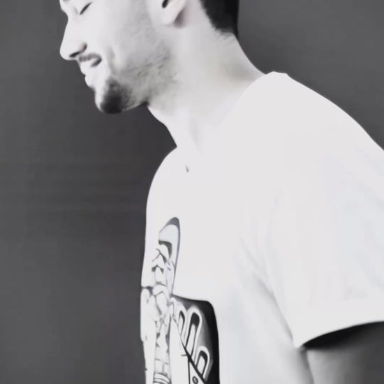 This unisex Thunderbird (Noir) tee has a classic v-neck cut and fits like a well-loved favorite. It's comfortable and flattering for all. The Native Thunderbird represents power, protection, and strength. He's often seen as the most powerful of all spirits and is believed to protect against evil spirits. This Thunderbird (Noir) design symbolizes a deep connection to the natural world as well as transformation. Great causes need great designs! Reinvent your wardrobe with every step while championing wonderful causes.